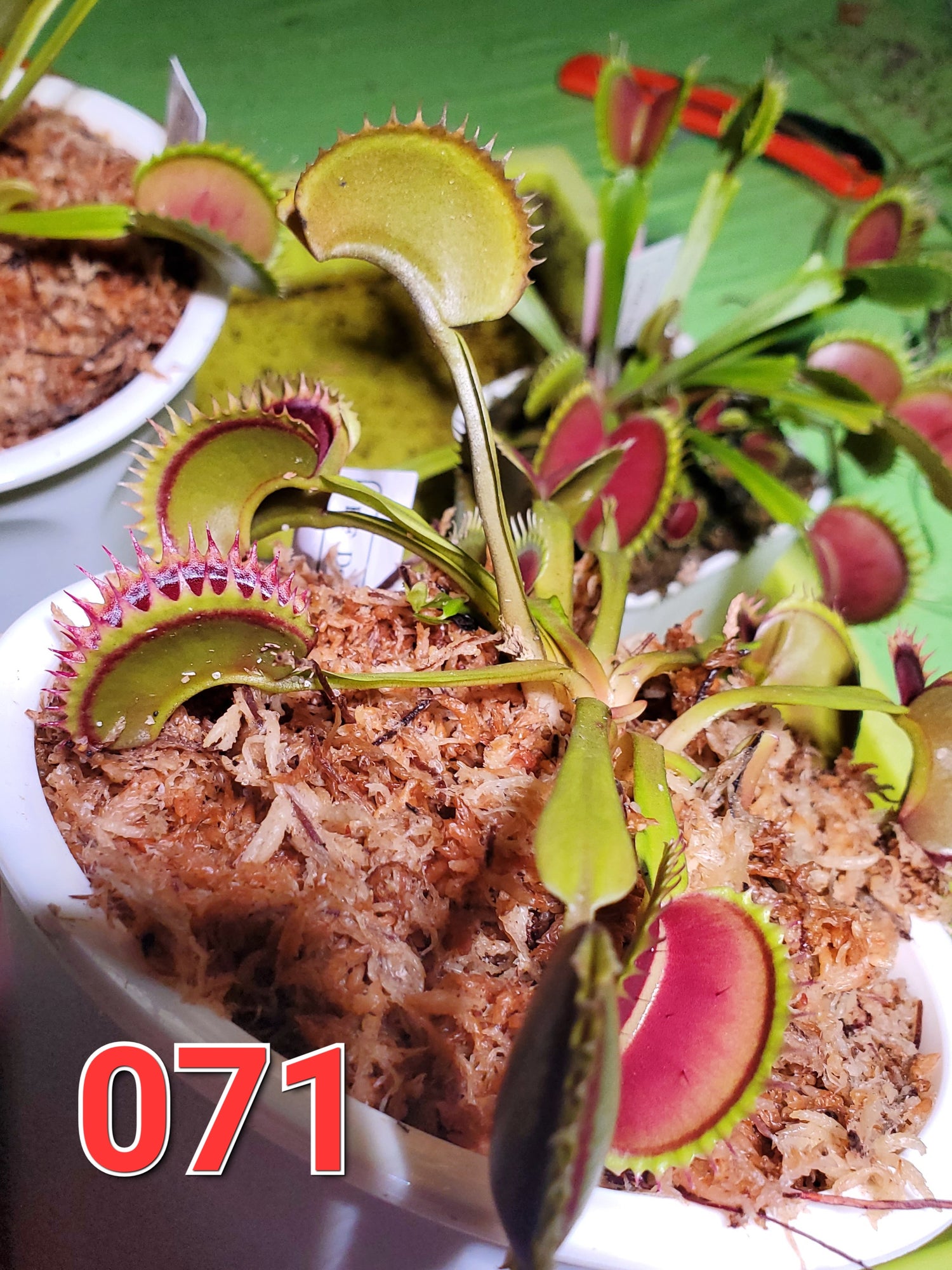This soon-to-be flytrap cultivar is known for its very Large traps, dark blood red mouths, in this case with red banding rings on outside edges and long triangular cilia (Liberty spike-esque) in the theme of "Dracula" flytraps.