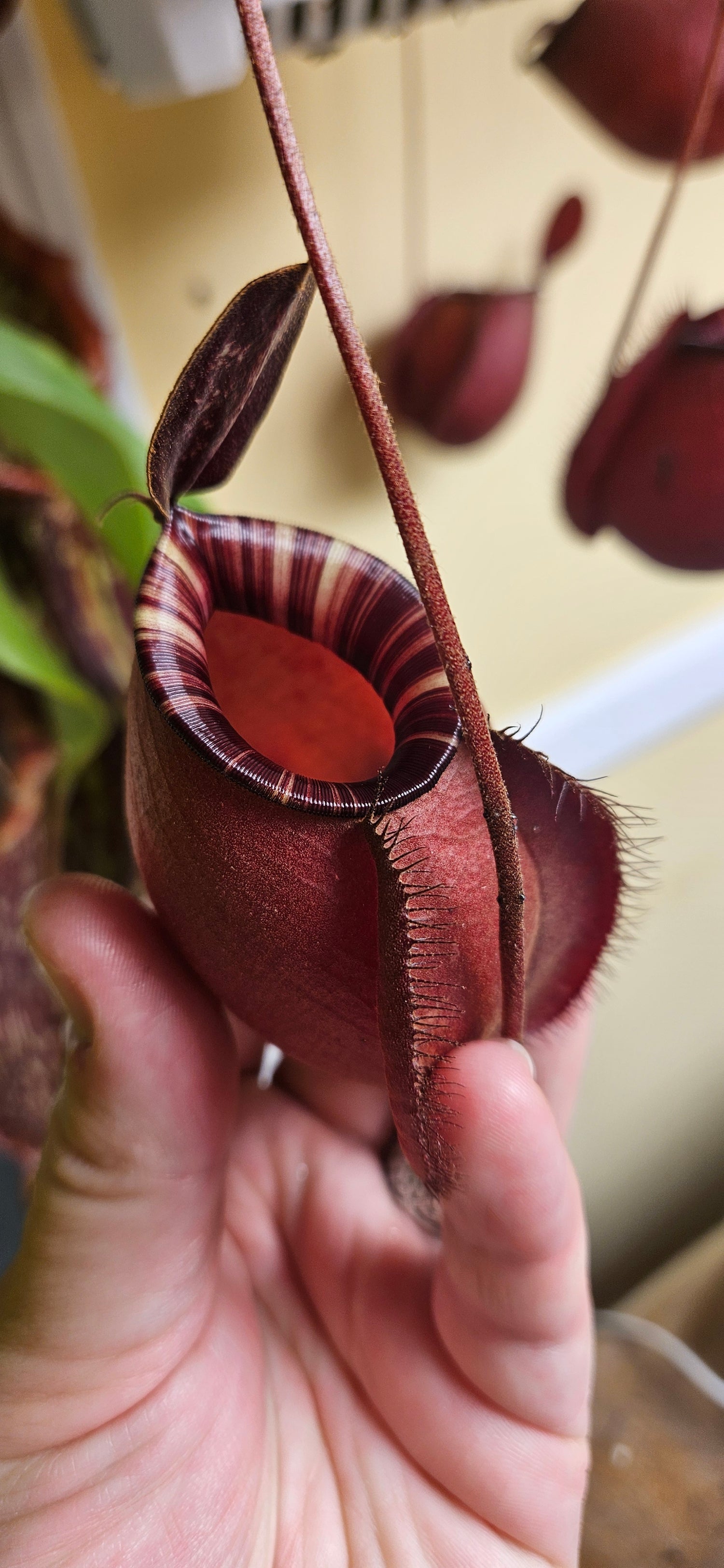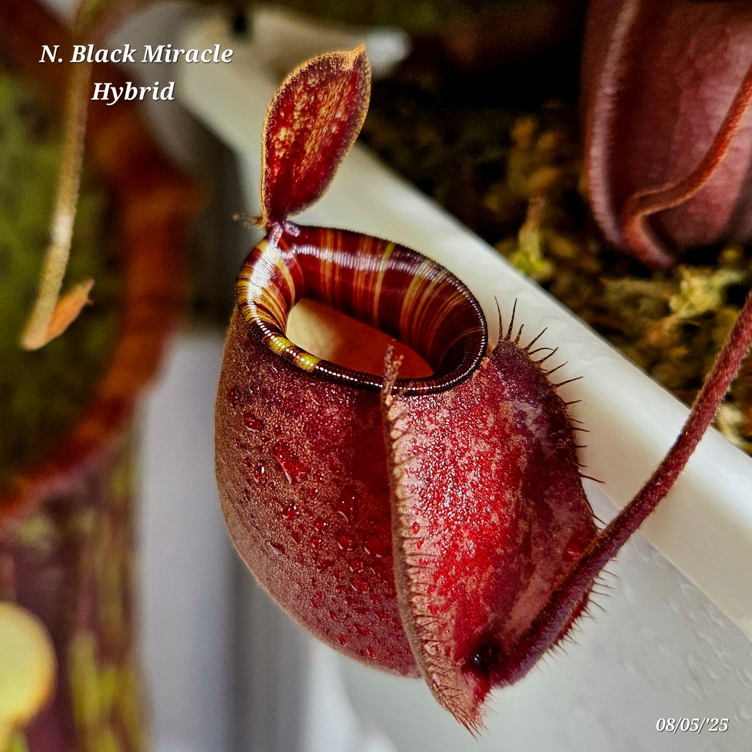This stunning hybrid brings together the best of both worlds — the elegant curves of *N. ventricosa* and the squat, ground-hugging charm of *N. ampullaria ‘Black Miracle’*. The result is a plant that’s both striking and easy to love.